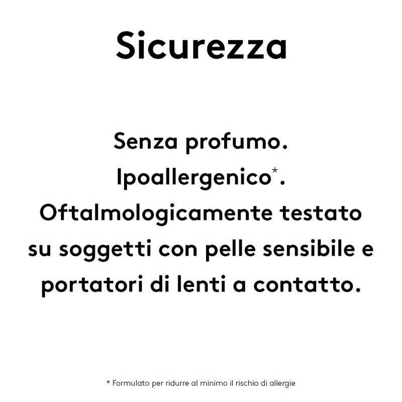 Ipoallergenico* ed oftalmologicamente testato su soggetti con pelle sensibile e portatori di lenti a contatto