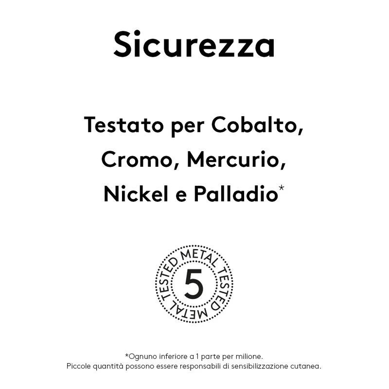 Testato per Nickel, Cobalto, Cromo, Palladio e Mercurio.*